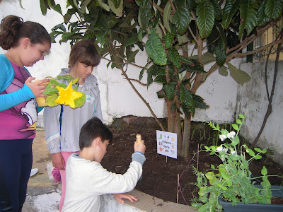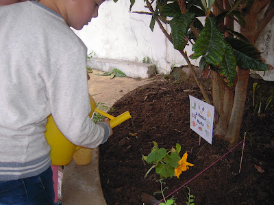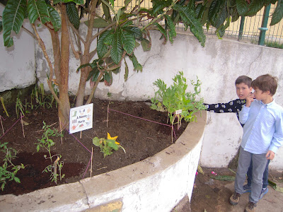 Embora a nossa escola não possua espaço de jardim, conseguimos aproveitar um cantinho do nosso recreio para fazer uma pequenina horta.