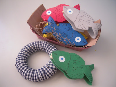 Para S. Jean de la Porte enviámos uma rodilha e uma canastra feita a partir de materiais reciclados, cheia de peixinhos.