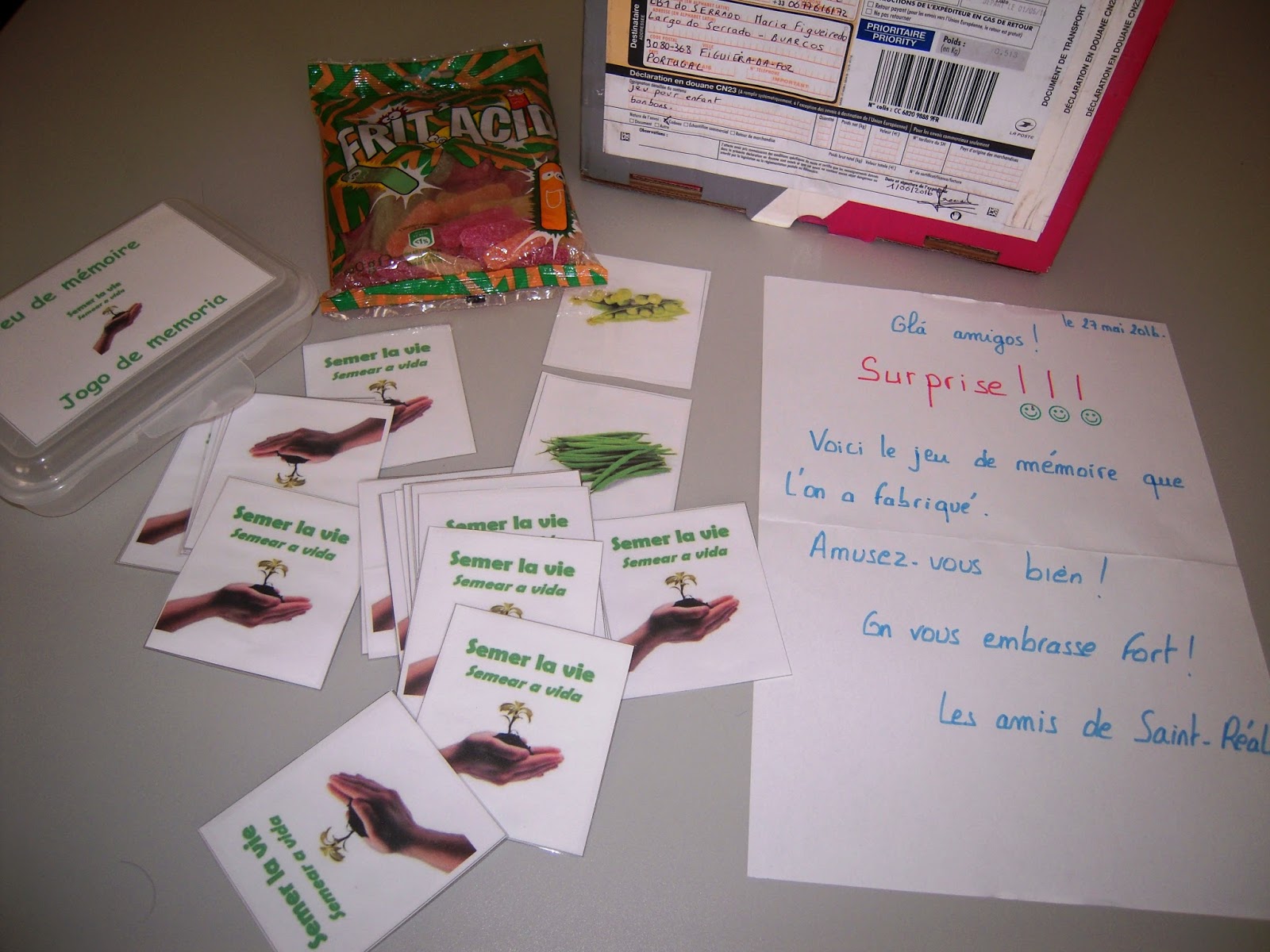 De França veio um jogo da memória cujo tema são as plantas comestíveis que semeámos, acompanhado de uns docinhos muito saborosos!